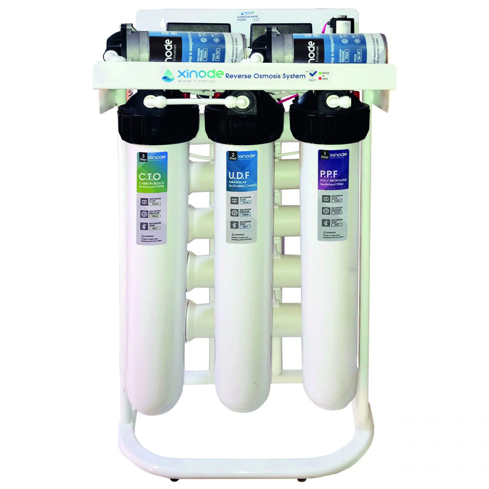 دستگاه تصفیه آب نیمه صنعتی پایه بلند زینود با نام ASI4002PL یکی از مدلهای پرقدرت تصفیه آب به روش اسمز معکوس است که توان تولید اسمی ۴۰۰ گالن آب تصفیه شده در طی ۲۴ ساعت را دارد. این دستگاه مناسب برای مصارف بالاتر از خانگی و کمتر از مصارف صنعتی است. این مدل بر بروی شاسی مستحکم فلزی زد زنگ با رنگ کوره ای استاتیک سوار است و به راحتی میتوان آن را برروی زمین قرار داد و یا به دیوار نصب نمود.