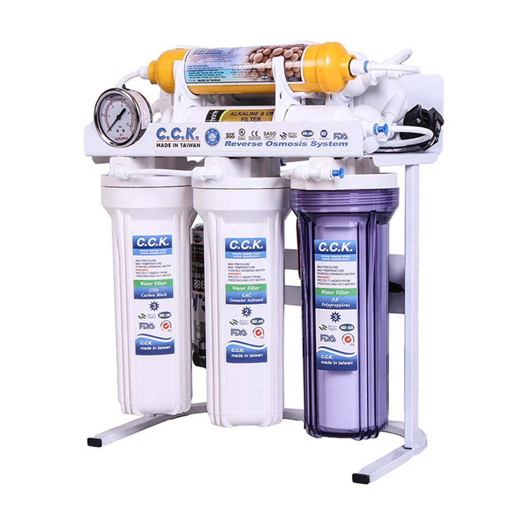 دستگاه تصفیه آب CCK سی سی کا ۶ مرحله ای دارای فیلتر الیافی به عنوان فیلتر اول و فیلتر کربن پودری به عنوان فیلتر دوم و فیلتر کربن اکتیو به عنوان فیلتر سوم است. این سه مرحله، مراحل اولیه یا پیش تصفیه می باشند.